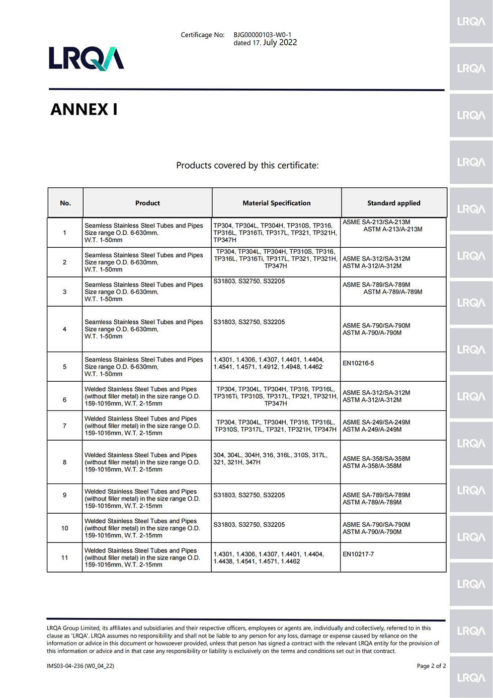In addition, we also conduct NDT, such as UT, ET, HT and RT to ensure the reliability and safety of the products. We are equipped with a complete set of physical and chemical laboratory testing equipment to meet the diverse testing needs of our customers.