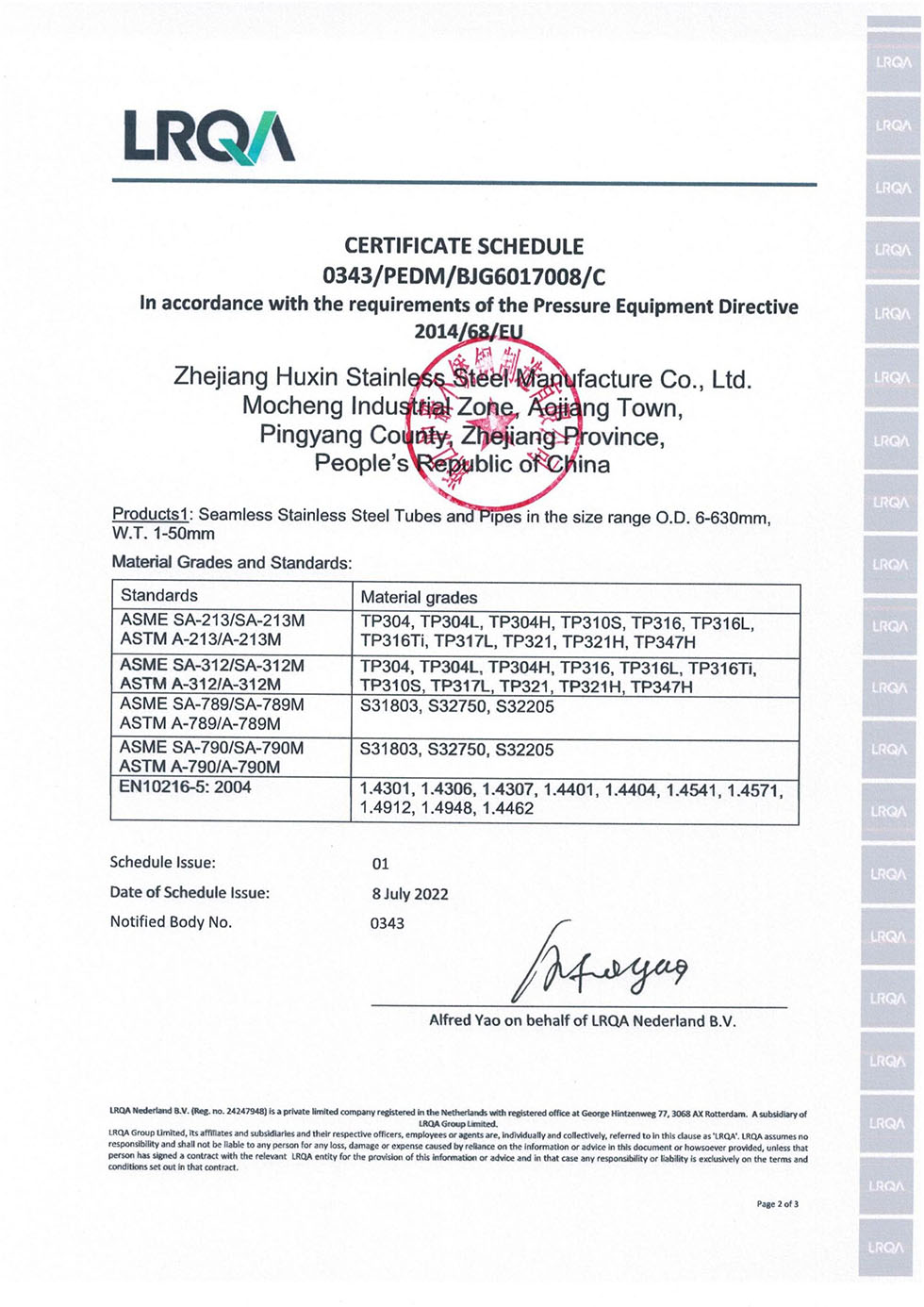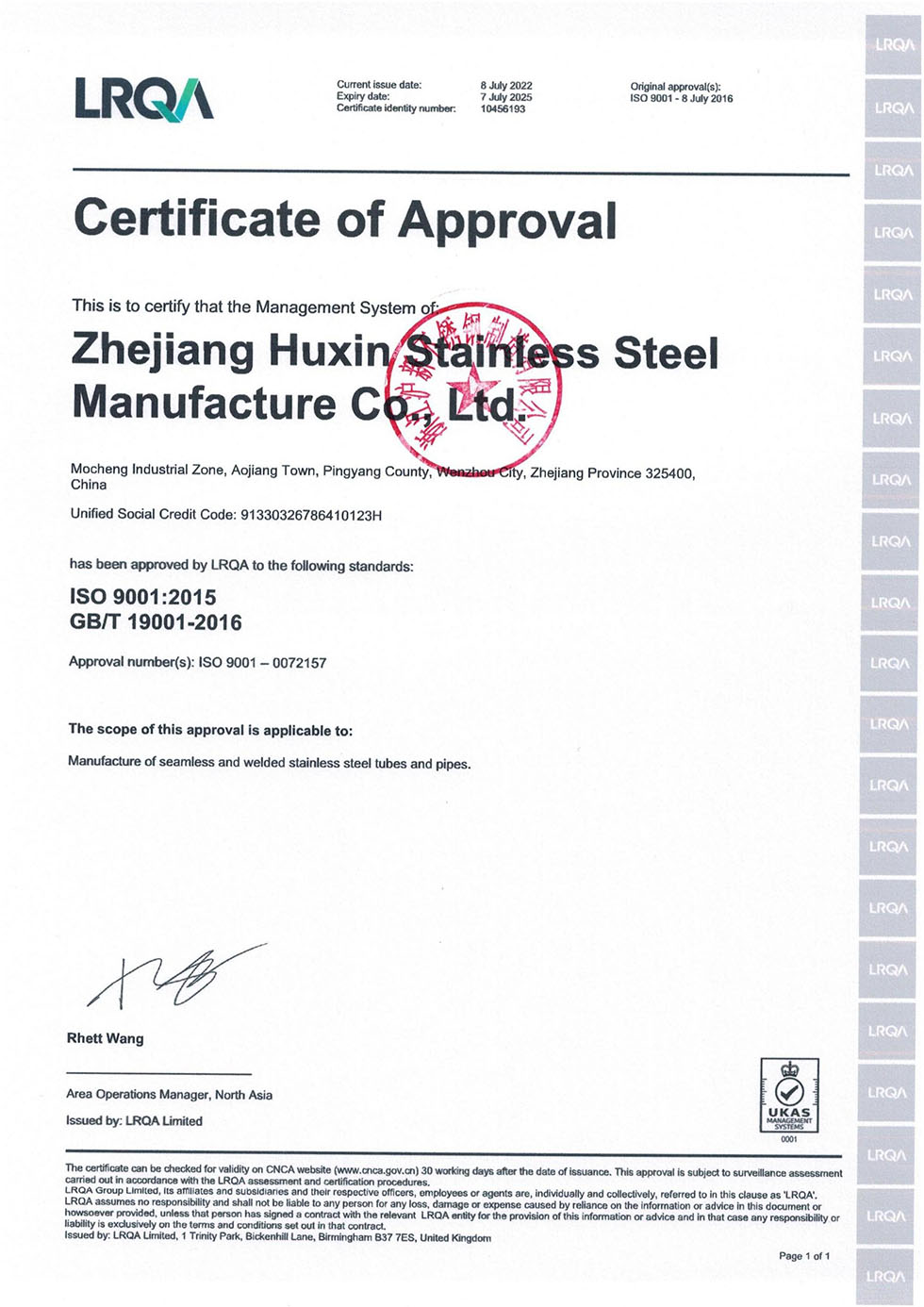 HUXIN Pipe has always been concerned about environmental protection. We are equipped with advanced sewage treatment equipment to ensure the recycling of water resources after pickling and minimize water waste. In addition, we have a dedicated team of environmental stewards to adjust and optimize the factory's environmental measures at any time. We adhere to our commitment to environmental protection and actively strive to contribute to sustainable development.