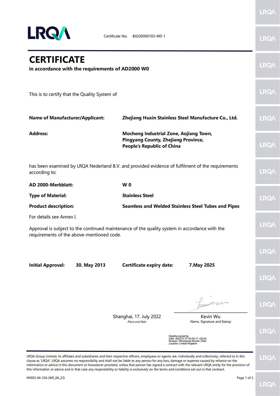 HUXIN Pipe has always been concerned about environmental protection. We are equipped with advanced sewage treatment equipment to ensure the recycling of water resources after pickling and minimize water waste. In addition, we have a dedicated team of environmental stewards to adjust and optimize the factory's environmental measures at any time. We adhere to our commitment to environmental protection and actively strive to contribute to sustainable development.